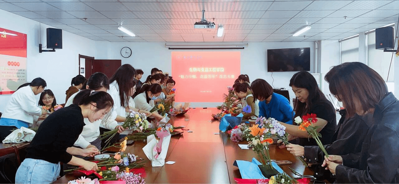 为丰富教职工业余文化生活,推进幸福校园建设,以植物之美展现学院女教师风彩,11月13日下午,6776永利集团分工会在行知楼1502会议室举办了 2024年“魅力巾帼 花漾芳华”女教工首届花艺大赛,学院党委书记郭桃芬、院长朱桂兰、副书记兼分工会主席马喆担任评委,活动由分工会委员周其松主持。