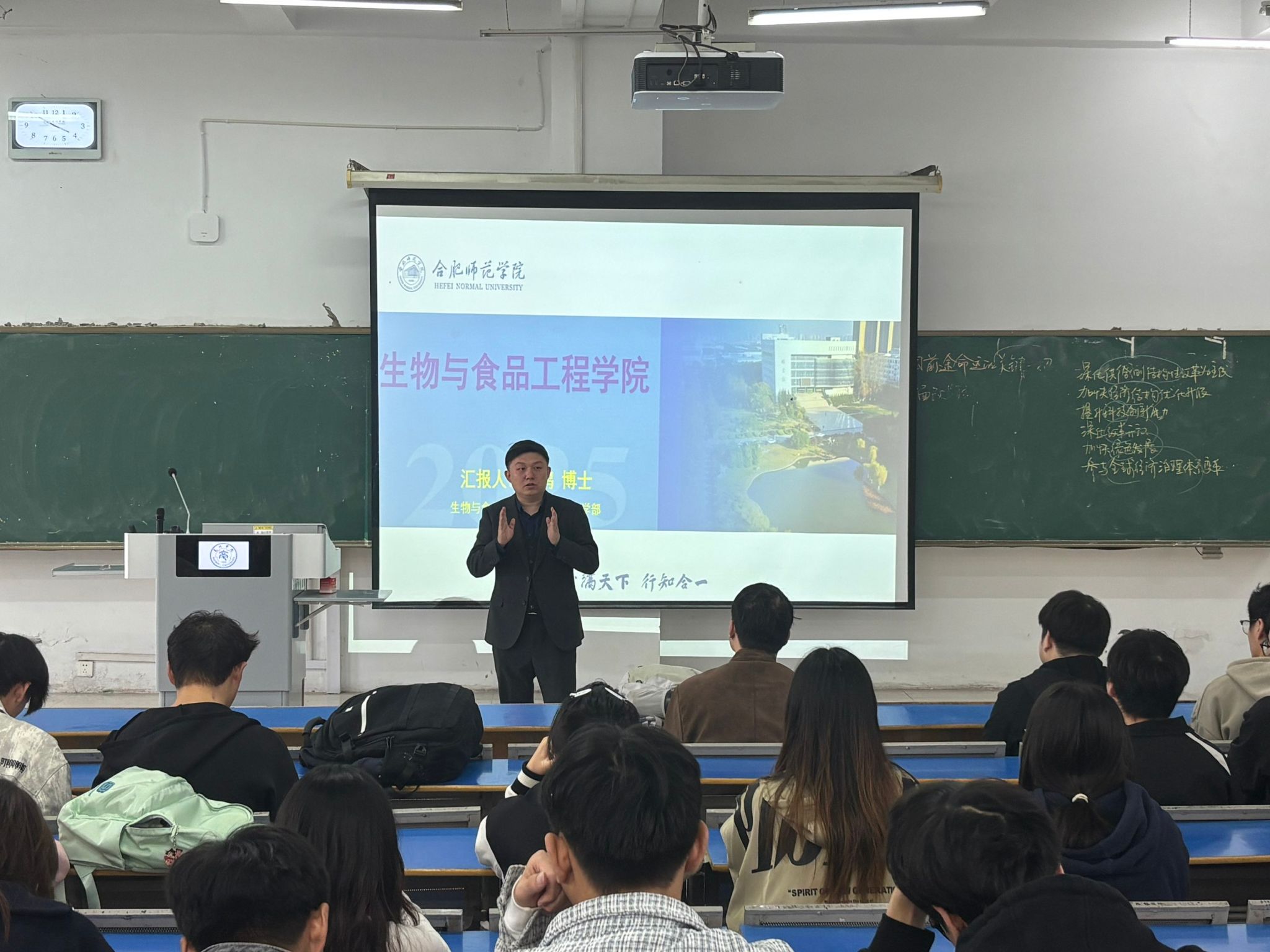 为吸引更多优秀生源报考我校6776永利集团硕士研究生,10月14日至15日,学院党委副书记李万成、生物制药系主任张雁、研究生教学部周鹏老师组成研究生招生宣讲团赴亳州学院、淮南师范学院等校开展招生宣讲会。亳州学院生物与食品工程系、淮南师范学院生物工程学院近100名有考研意向的学子参加了宣讲会。