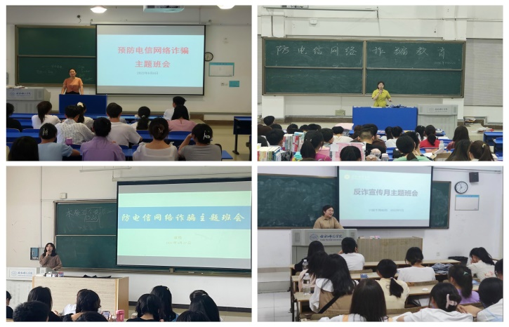此外,辅导员们通过班级QQ群和微信群实时转发校保卫处发布的《锦绣派出所-每日电诈警情通报》、《锦绣派出所-警方通报-简要案情》等宣传材料;通过走访宿舍,检查学生安装国家反诈APP情况以及是否完成“四个必须”;利用谈心谈话,了解学生日常的消费情况和思想动态,及时发现安全隐患并解决问题;班委利用晚自习时间,在班级宣读《yl6776永利集团保卫处反电信网络诈骗警示通报》,加大反诈骗知识宣传,并通过拍摄反诈骗话剧宣传视频,进一步提高同学们的反诈意识。