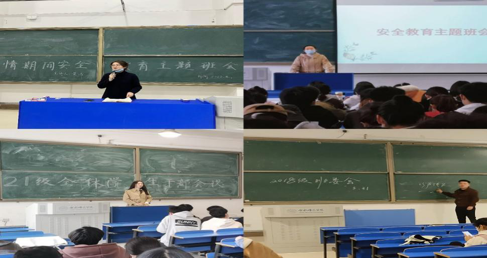 会上,辅导员带领同学们共同学习了《违反新冠疫情防控管理的行为及法律后果明白纸》,强化纪律意识;要求同学们积极配合核酸检测,做到“应检尽检”;强调坚持每日疫情防控信息打卡、非紧急不离校不离肥,特殊情况需严格履行请假手续;提醒同学们做好日常防护工作,按要求佩戴口罩,勤洗手,多通风;严禁翻爬围墙擅自进出学校,对于防疫信息不造谣、不信谣、不传谣;强调毕业班外出就业的同学要遵守防控规定,做好自我防护,增强安全意识和责任意识。同时,辅导员针对清明节放假和安全管理工作做了强调和说明,动员大家走下网络、走出宿舍,积极参加学院组织的“清明节”“拔河比赛”、“操场音乐会”等文体活动。