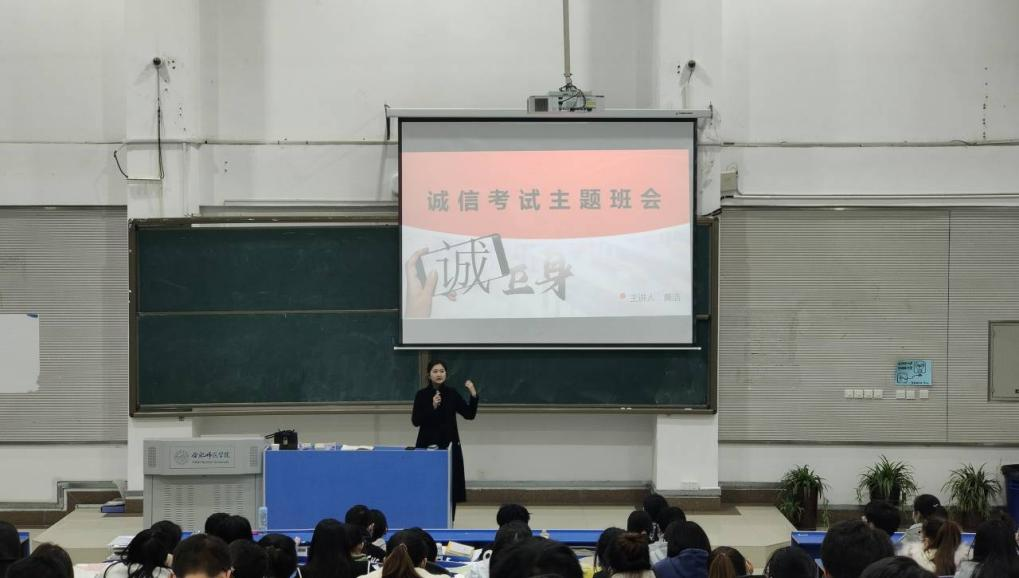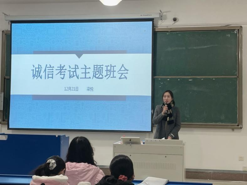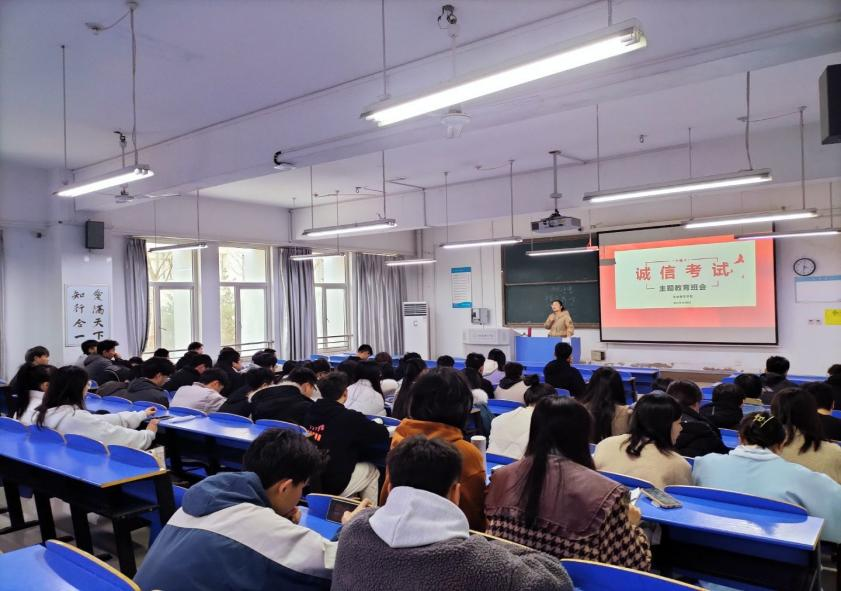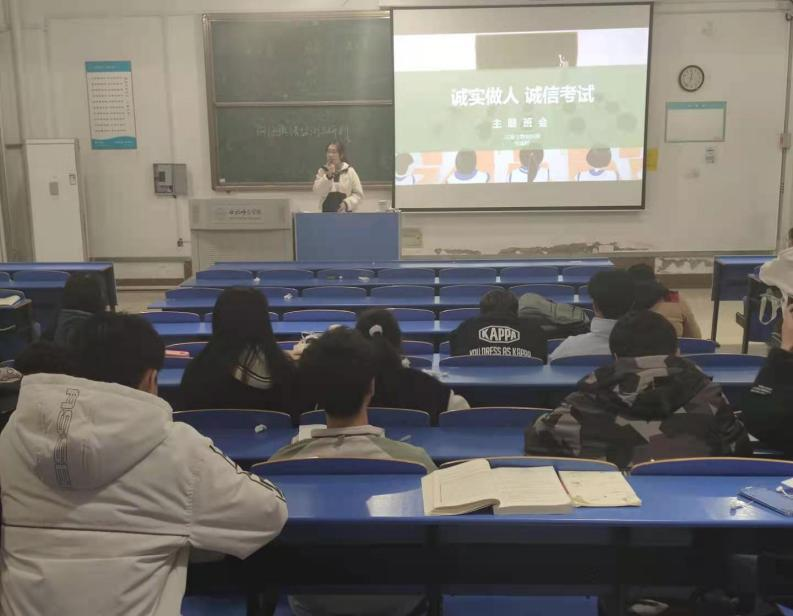 班会中,辅导员向同学们强调诚信考试的重要性,引导同学们以积极的心态备战应考,严肃考试纪律。并带领大家学习学生手册上有关考试违规的相关管理办法和条例(《国家教育考试违规处理办法》、《yl6776永利集团学生考试违规处理》等),组织签订《诚信考试承诺书》。