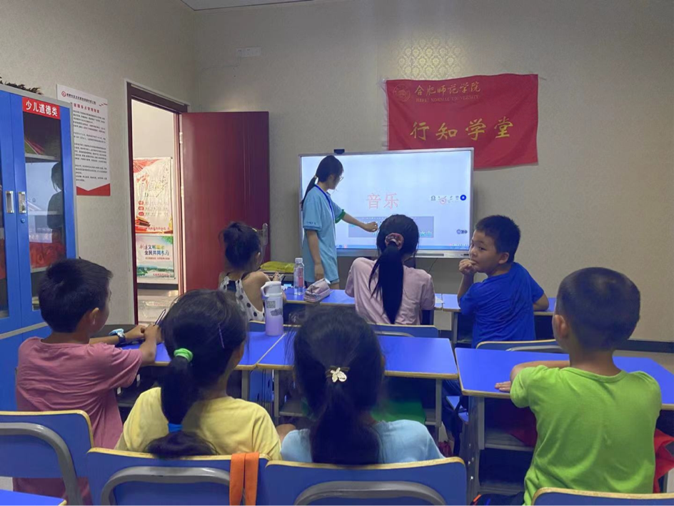 该学堂由2019级生物技术专业的徐欣荣、尤洁、钱雨欣、李琴四位“小先生”共同创办。四位来自无为的“小先生”一致决定将“行知学堂”带到家乡,小先生们根据自身特长爱好开设了暑期安全教育、党史教育、手工制作、音乐、趣味英语、绘画、朗诵会等多项趣味课程。小先生们提前谋划,制定了详细的活动计划,内容涵盖课业辅导、兴趣培养、情感教育、心理辅导、素质拓展等多方面,带给孩子们一个充实而有收获的暑假。