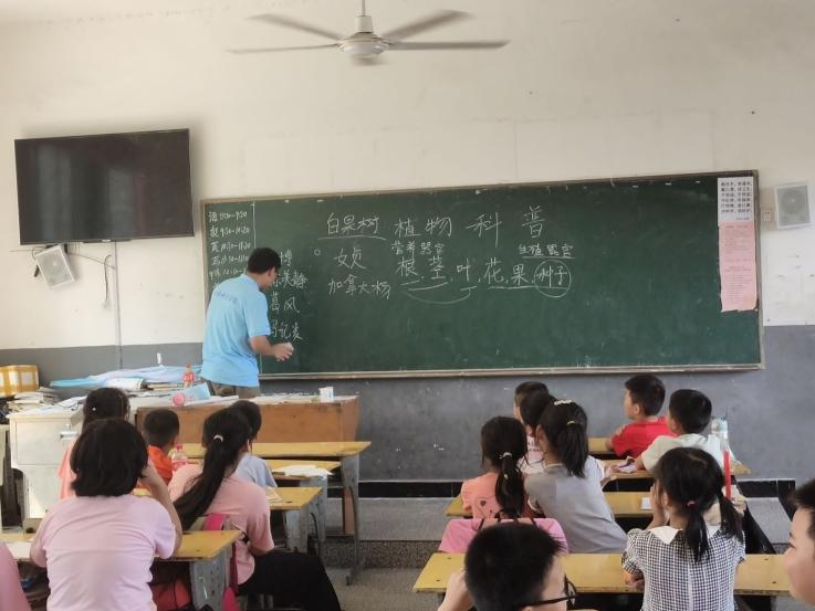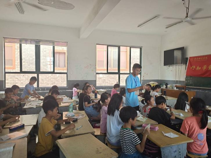 yl6776永利集团生命科学学院2020级生物科学师范专业的6位“小先生”积极响应团中央、团省委和学校的号召,顶着烈日骄阳,秉承“爱满天下、知行合一”的校训,踏上志愿征程,践行行知精神。他们走进安徽省阜阳市临泉县张新镇马楼村文侨小学,在这里开办了“启智行知学堂”暑期志愿服务活动。本次活动得到了马楼村委会和文桥小学的大力支持,并于7月8日上午8点在文侨小学教室举行了开班仪式。文侨小学校长、6名小先生和40名小学员参加了启动仪式。