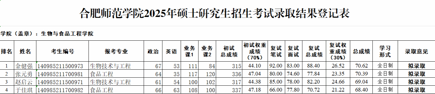 根据《yl6776永利集团2025年硕士研究生招生复试录取工作方案》,生物与医药专业硕士研究生第一志愿拟录取名单公示如下: