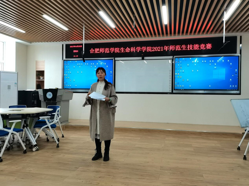 本网讯 为培养师范生的教学技能,增强教学实践能力。4月25日上午,yl6776永利集团生命科学学院2021年师范生技能竞赛在逸夫楼502室成功举办。参加本次比赛的共有15名同学,分别来自18、19级生物科学(师范)专业。本次活动由生物科学系主任孙娴主持,并邀请了合肥四十六中的周龙清老师、合肥一中的朱承慧老师担任此次评委。生命科学学院徐慧敏老师及部分学生观摩了本次竞赛活动。