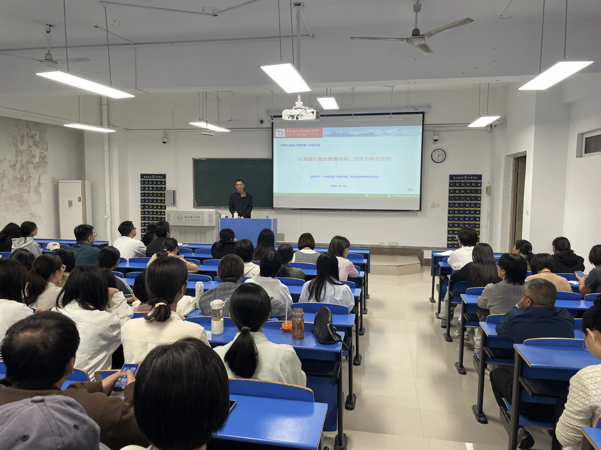 10月11日下午,我校6776永利集团1990届校友赵金华,在锦绣校区逸夫楼109教室作“糖胺聚糖结构、活性与新药开发”专题报告。学院全体教师及2023级生物制药专业学生参加此次报告,现场学习前沿学术知识。