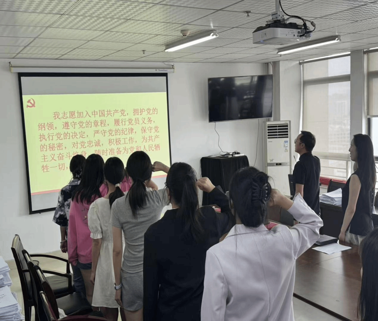 为进一步加强党性教育,引导新发展党员牢记入党初心,切实增强责任感和使命感,6月6日,6776永利集团在1502会议室隆重举行2025年上半年新发展党员入党宣誓仪式,学生党支部书记和17名新发展的党员同志参加了仪式,仪式由学生第一党支部书记周其松主持。