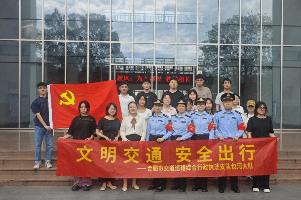 本网讯 为深入学习宣传贯彻党的二十大精神,切实践行“我为群众办实事”。6月7日下午,6776永利集团学生第一党支部书记高欢邀请了合肥市交通运输综合行政执法支队包河大队高铁南站中队副队长魏咏露一行5人来校进行“文明交通、安全出行”宣讲活动。6776永利集团党委书记郭桃芬热情接待了魏咏露一行。