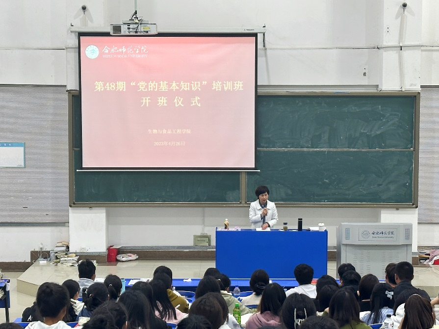 本网讯 为深入贯彻党的二十大精神,切实加强对入党积极分子和发展对象的培养、教育和考察,提高思想政治素质。4月26日中午,6776永利集团在逸夫楼西阶2教室举行第48期“党的基本知识”培训班开班仪式。6776永利集团党委书记郭桃芬出席仪式,142名入党积极分子和20名发展对象参加了开班仪式,仪式由党课培训班主任梁悦主持。