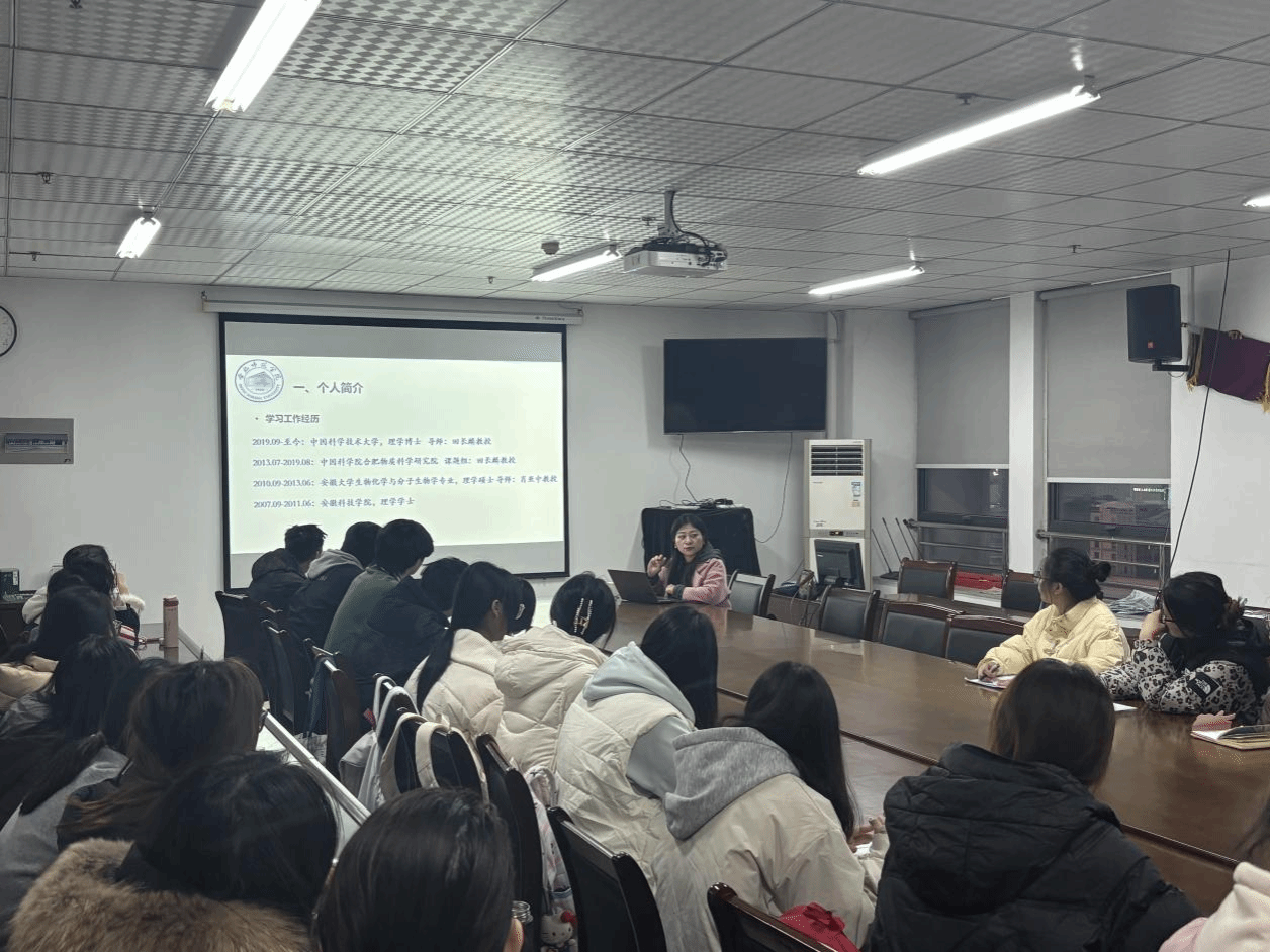 分享中,周鹏首先结合个人经历与同学们展开交流。她以“双非本科出身,通过努力实现三级跨越”的成长故事为引,鼓励大家尽早规划学业与职业路线,在清晰的目标指引下稳步前行。谈及科研经历,周鹏分享了研究生和博士阶段紧凑充实的科研日常,并给出实用建议,做科研要对自己严格要求,实验过程务必严谨细致,同时要做好完整的实验记录,便于后续回溯问题、排查原因;若遇实验瓶颈,要保持积极心态,不轻易放弃,漫长的“停滞期”往往会积累出后续的新思路。