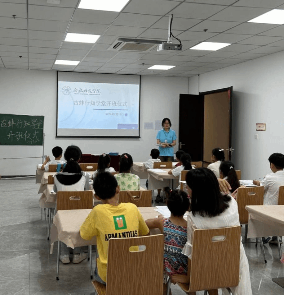 开班仪式上,“小先生”代表韩旭为小学员和家长介绍了古蚌社区行知学堂的必修课程以及特色活动,陈述了学堂意义,以及告知了课程时间和安排。古蚌社区行知学堂设置有英雄人物事迹讲述、传统文化宣传、当地文化特色普及、手工制作课程、安全防护讲堂、硬笔书法、特色科学等特色课程。接下来,小学员们轮流上台进行自我介绍,彼此间有了初步了解和认识,同时也拉近了师生间距离。