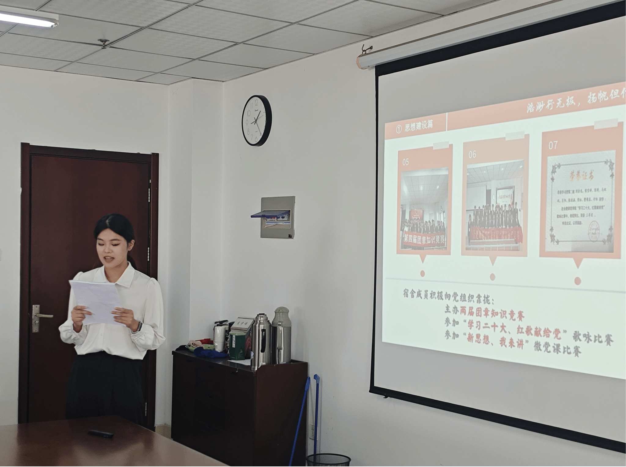 汇报会上,5个班级和6个宿舍共11个学生先进集体代表通过PPT的形式,就专业学习、社会实践、文化创建、荣誉收获等方面,充分展示了班级、宿舍以在2023-2024学年优良学风创建过程中所取得的丰硕成果。同学们准备充分、汇报精彩,评委老师们结合支撑材料和现场汇报评分。最终,评选出2022级生物制药班、10栋213宿舍分别作为学院优秀班级、宿舍参加学校“十佳”优良学风评选。