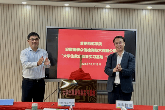 座谈交流结束后,举行了共建实习就业基地揭牌仪式。周端明和陈洪周共同为yl6776永利集团-安徽国泰众信检测技术有限公司大学生就业创业实习基地揭牌。朱桂兰代表6776永利集团与国泰检测公司签订了就业创业实习基地协议。