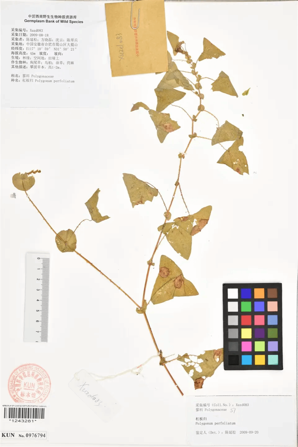 2009年方晓磊跟随陈延松老师采集野生植物被中国西南野生生物种质资源库收录,图为标本被中国科学院昆明植物研究所标本馆收录照片