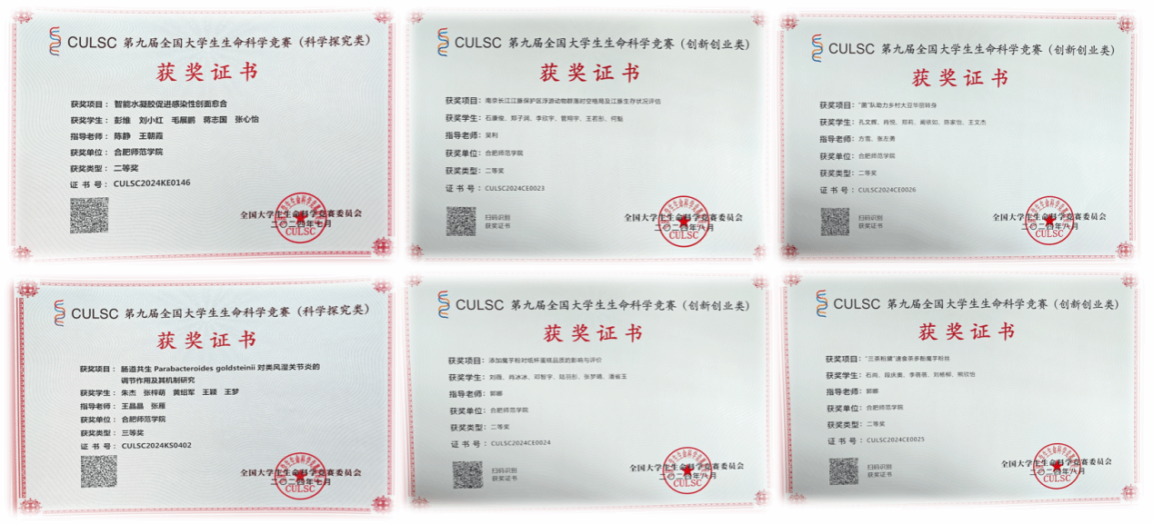 近日,第九届全国大学生生命科学竞赛(科学探究类、创新创业类)决赛分别在浙江万里学院和四川西华大学圆满落幕。6776永利集团学子在本届赛事中表现优异,共获得二等奖5项,三等奖10项。
